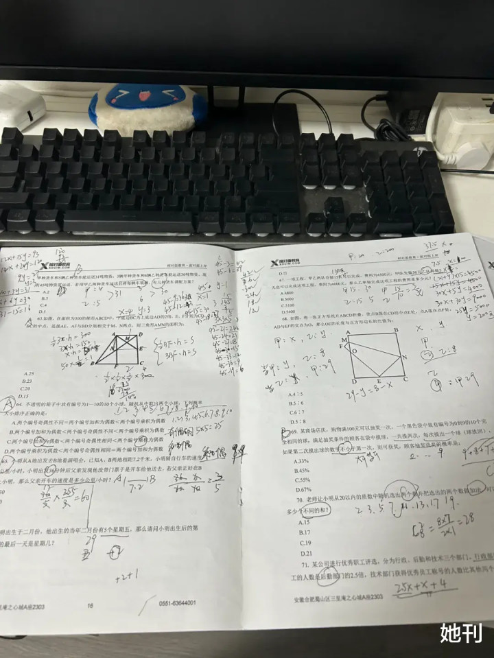 江莱在北京打拼10年 2022年,江莱辞职回到合肥老家,却发现求职并非易事。 求职受挫,她先是考取研究生进行学历提升,去年毕业后又分别参加了事业编、省公务员考试各一次,均未通过笔试。 期间,江莱一直在寻找工作机会,每次面试她遇到最多的并非工作能力问询,而是有关婚恋、生育等问题,“HR都会问结婚了吗?生孩子了吗?打算生几个?”这对中年女性就业并不友好。父母却不理解她的焦虑,认为“眼下有个班上就够了”。 今年,年满35岁的江莱失去考公报名资格,她入职了一家新媒体公司,工作每月单休且经常加班。种种经历让她的忧虑只增不减:“现在的资源越来越少,机会越来越少,太多的不确定因素,导致我越来越想寻求一个稳定。” 所以,当10月14日机会降临,江莱并没有告诉父母,只是默默抓紧一切时间。 白天,江莱要参加大量的工作会议。晚上6点若准时下班,她将立刻回家并快速解决晚饭,30分钟后,她端坐桌前,开始长达5个小时的学习。计划虽好,但晚上七八点她仍在加班才是常态,对此,江莱只能向后延长学习时间。